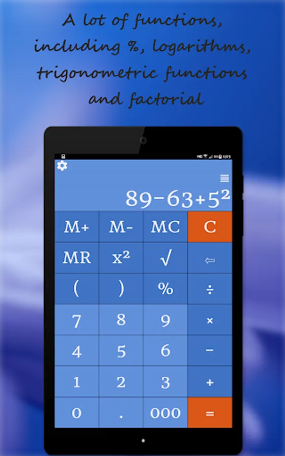 - A lot of functions, including %, logarithms, trigonometric functions and factorial
