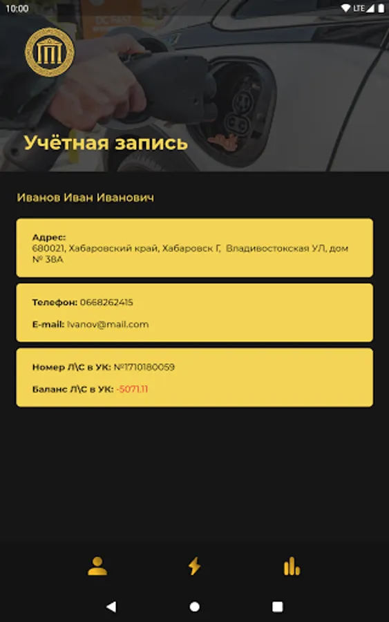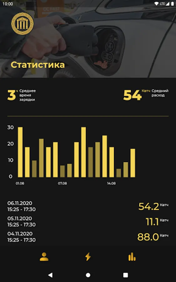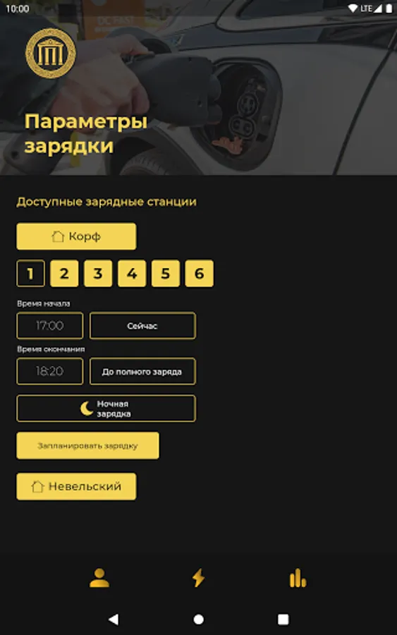 The application allows residents of Pantheon Management Company to put their electric vehicles on charge. To do this, you need to select a charge, select a time and click on the schedule button. Statistics are available for each charge. And at the end of the month, the consumed electricity will be automatically added to your payment order.