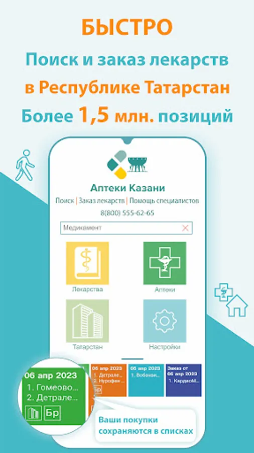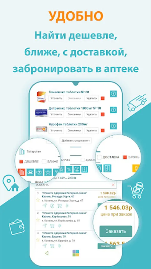 The Kazan Pharmacy application will help you find and buy medicines in pharmacies closer, cheaper. Delivery of medicines. Prices for medicines are presented on a map or list.