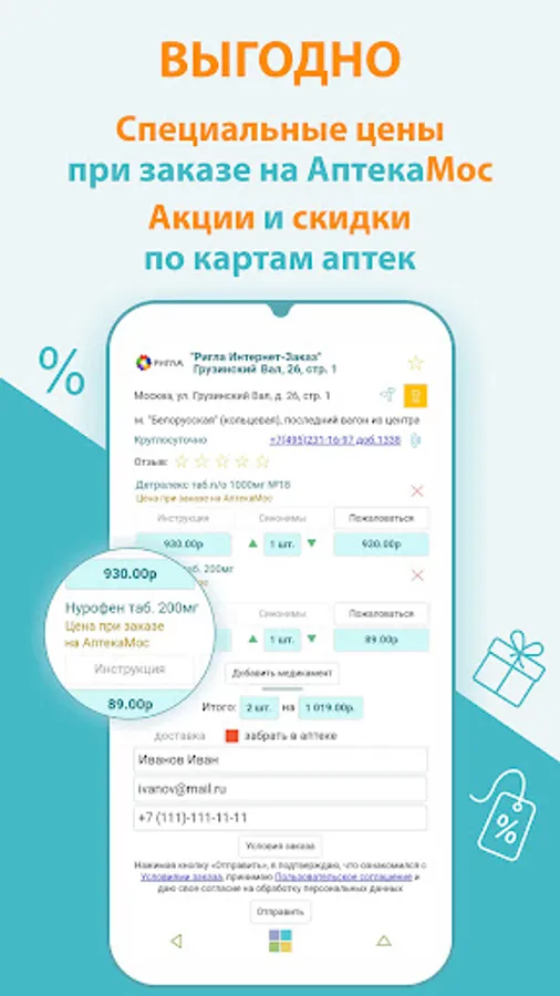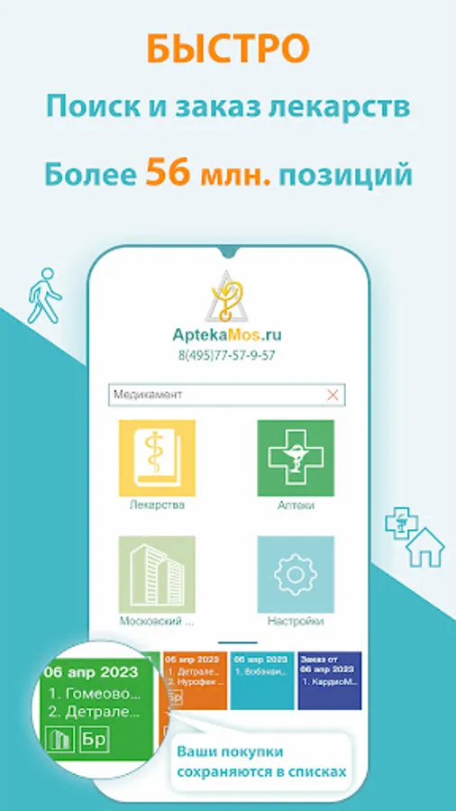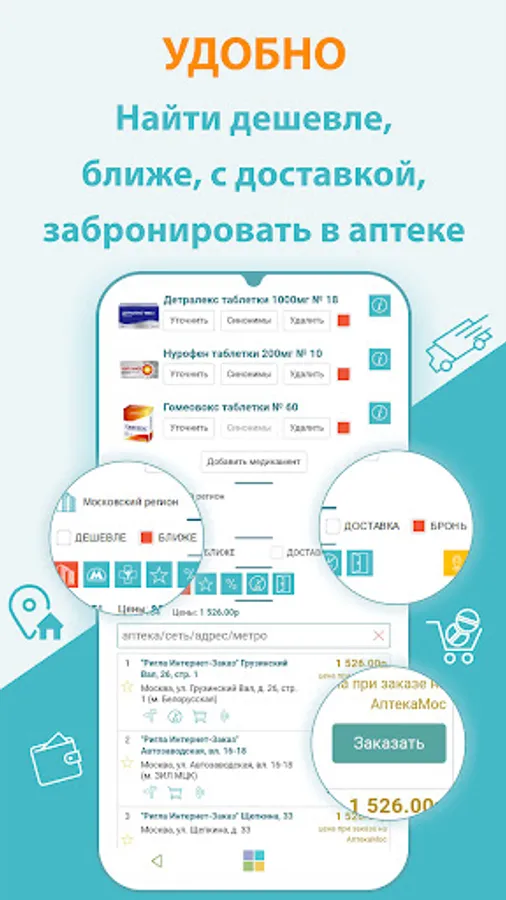 The AptekaMos application will help you find and buy medicines in pharmacies in Moscow, the Moscow region and the regions. Search for drugs in pharmacies closer, cheaper. Delivery of medicines. Prices for medicines are presented on a map or list.