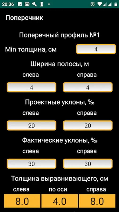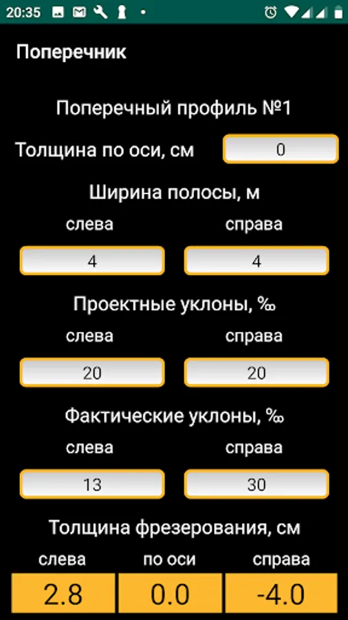 - actual transverse slopes