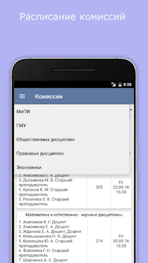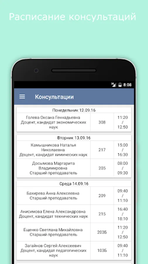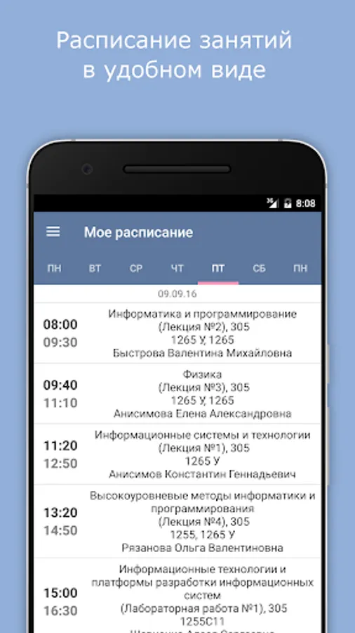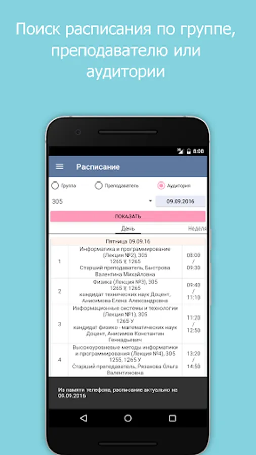 - automatic loading of the schedule (available for users with Android version from 4.0)