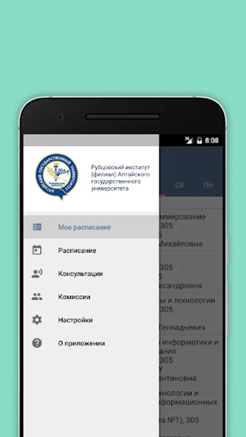 Application for obtaining the schedule of the Rubtsov Institute (branch) of Altai State University