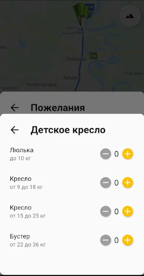 Place a child seat in the car for the safety of your child, transport a pet, non-smoking interior. Simply select the desired option in the application.