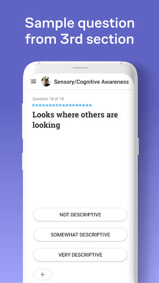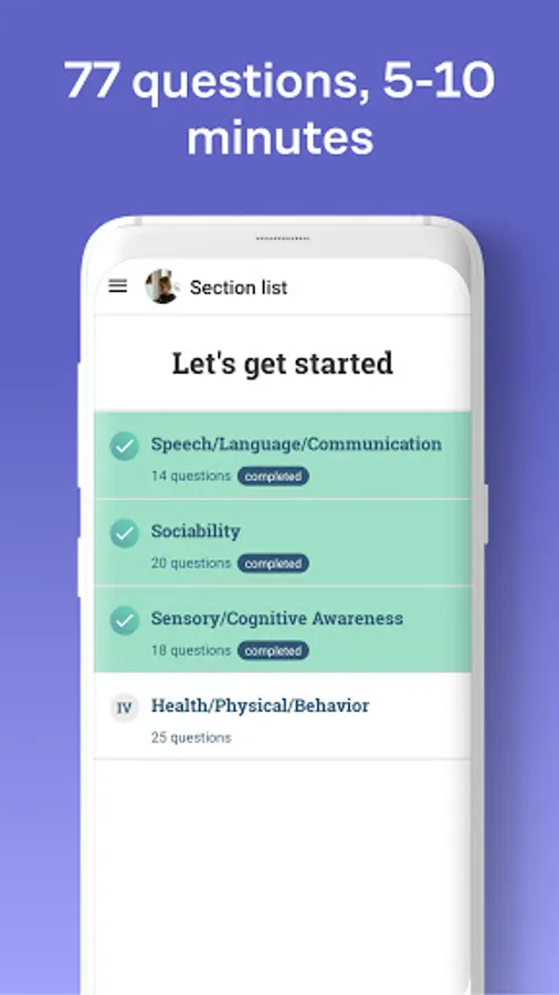 The application is based on the ATEC test from the American Autism Research Institute. It is designed for children from 5 to 12 years.