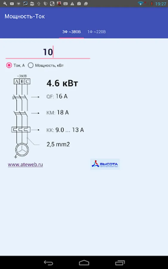 Converting power (kW) to the current (amps), and vice versa for 3-phase asynchronous motors 380 (winding connection - star).