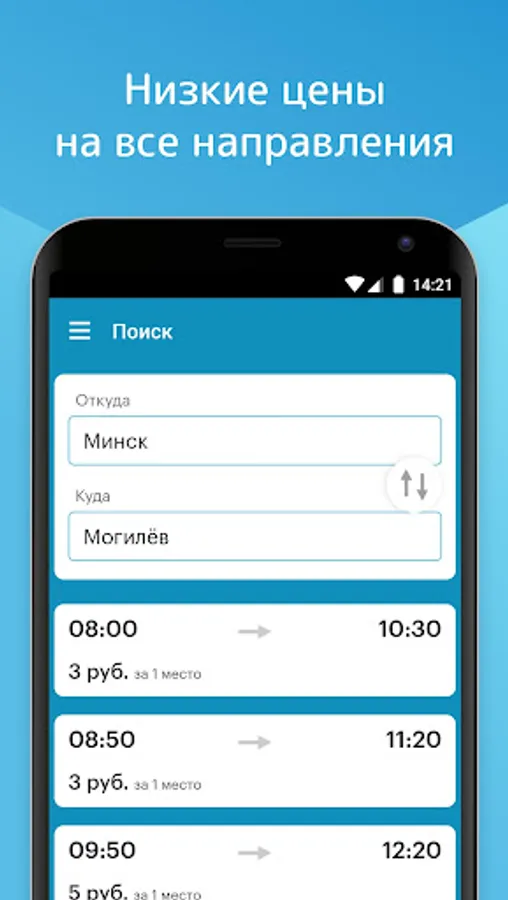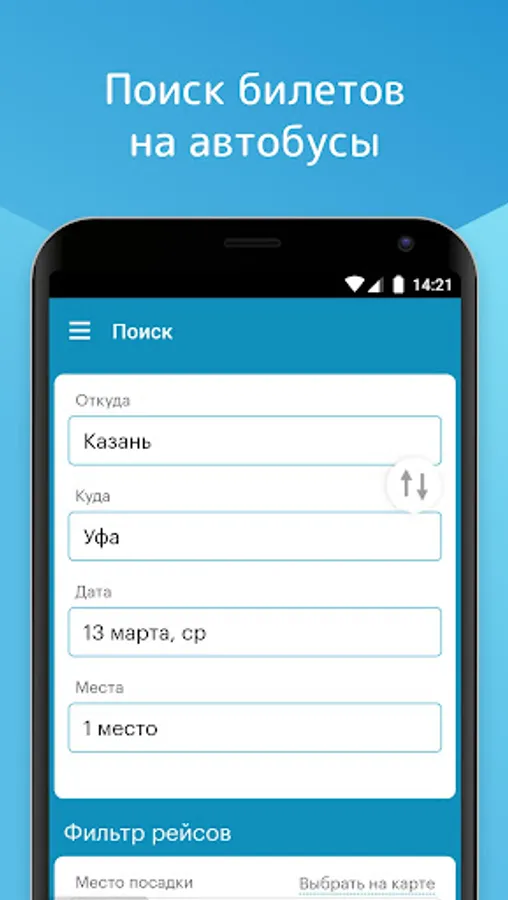 Atlas is a free mobile application for searching for bus tickets in Russia, Belarus and CIS countries.