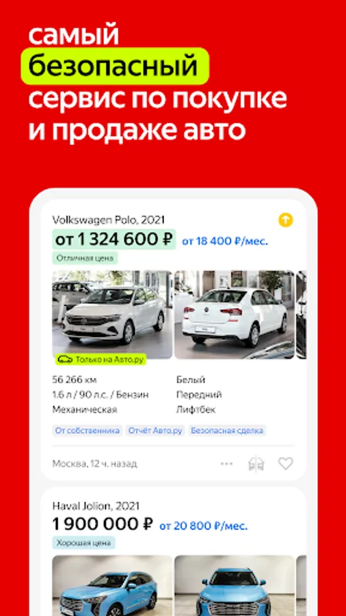 We want the used car market and the purchase of cars, motorcycles and their sale to become more comfortable for the average person. Buy and sell a car easily using the Auto.ru app. Among the 550,000 current ads, there is a suitable car, motorcycle or other equipment.