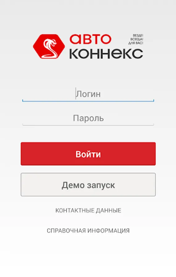 Appendix "AVTOKONNEKS" allows you to manage multiple systems «CobraConnex» and «CobraColor», installed on different cars. To enter the application uses the login and password provided to you after the conclusion of the agreement.