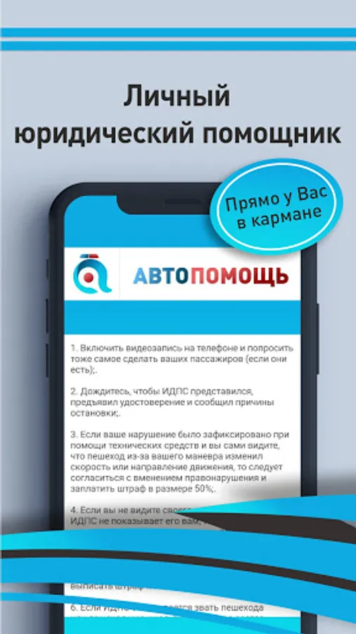 We are glad to present the paid version of the "AutoHelp" application. The application carries strictly educational information aimed at improving the legal literacy of drivers. Our legal experience allowed us to collect all the most frequent violations while driving, and described the behavior of traffic police officers. Based on this, we have compiled a legally correct action guide to avoid liability for violations.