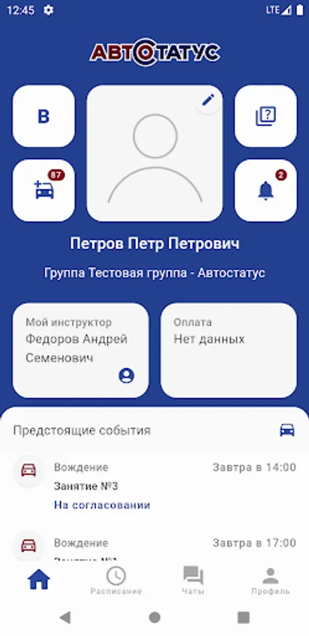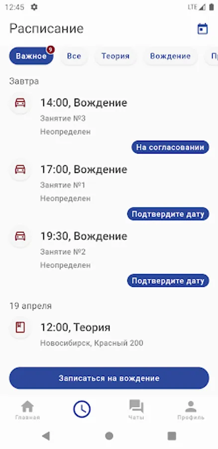 Schedule. You will see all your upcoming classes - theory, driving, exams - and get acquainted with the results of the classes already completed.