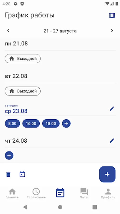 Schedule. Plan your working time - make a personal driving schedule so that students can sign up for you.