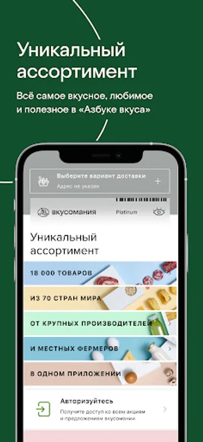 It's so easy to order home delivery of groceries and other goods! Download the Azbuka Vkusa app to evaluate the benefits of the service. Get a loyalty card and enjoy the privileges of regular customers!