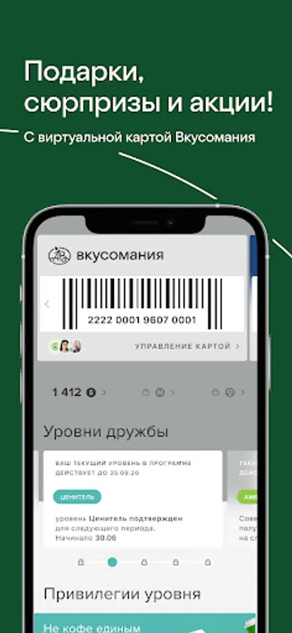Get a Vkusomania virtual loyalty card in the Azbuka Vkusa app and get bonuses for participating in promotions, quizzes and quests, for making purchases in the store or when placing an order. Get various goods for bonuses, subscriptions for breakfasts and lunches, for tea, coffee and other drinks.