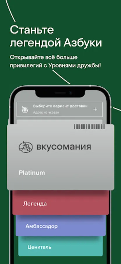 - Accept various payment options. You can pay for purchases in the Azbuka Vkusa application using cashless payment or Vkusomania bonuses, as well as upon receipt: in cash or by bank card.