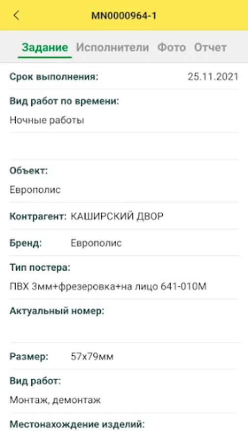 The application is used to manage editing jobs. Allows you to receive assignments, add comments, take pictures of assignment objects.