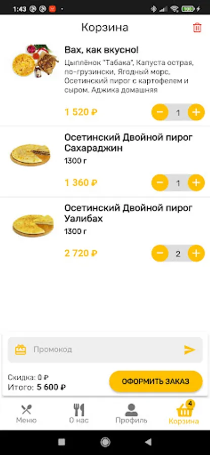 Nogbon bakery presents you a new mobile service for fast delivery of Ossetian pies and food for all food lovers. You can order real Ossetian pies, khinkali, salads, appetizers, hot dishes of Caucasian and European cuisine, desserts and drinks.