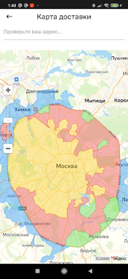 We deliver all over Moscow, from 40 minutes to 120 minutes, it all depends on your address.