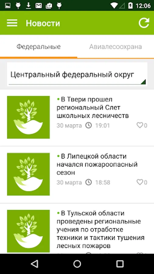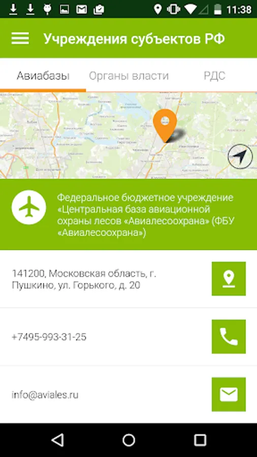 News available in the application of the Federal Agency for Forestry and FBU "Avialesookhrana" on the map are marked regional dispatching services, Regional institutions of aviation protection of forests and bodies of executive power authorized in the field of forest relations.