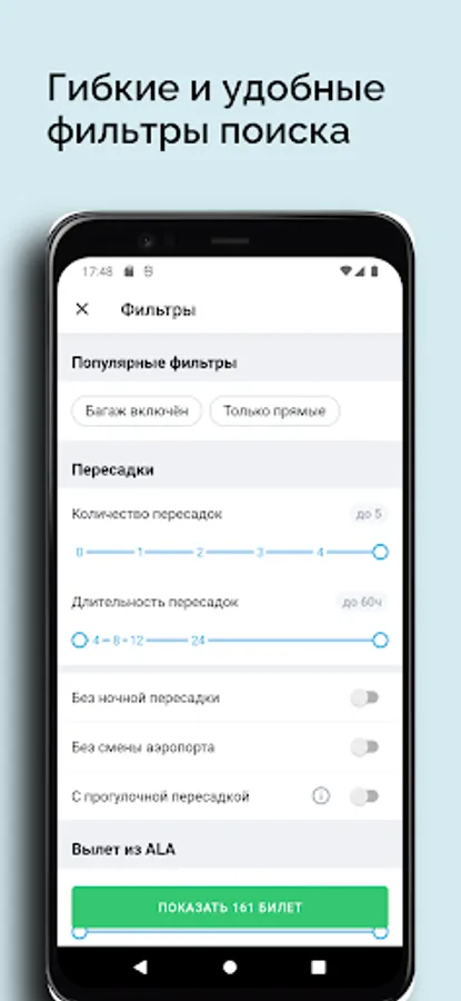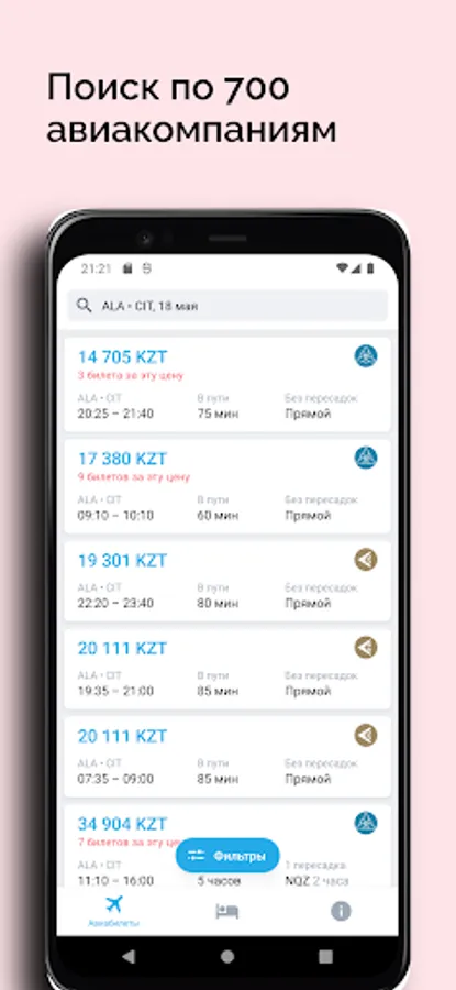 With the AviaSearch.KZ app it is very convenient to travel. We will be happy to receive feedback, suggestions and constructive criticism - together we will make the perfect application for finding flights from Kazakhstan around the world!