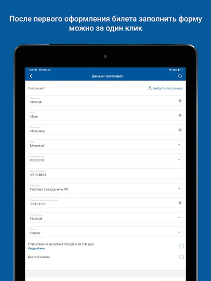 - automatic substitution of passenger data for subsequent purchases of electronic tickets