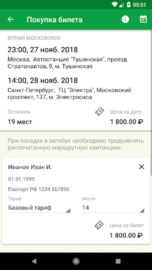 Pay for your ticket with a credit card in a convenient place for you. Information about the purchase is automatically transmitted to the bus station of the point of departure and is displayed in the carrier's landing list.