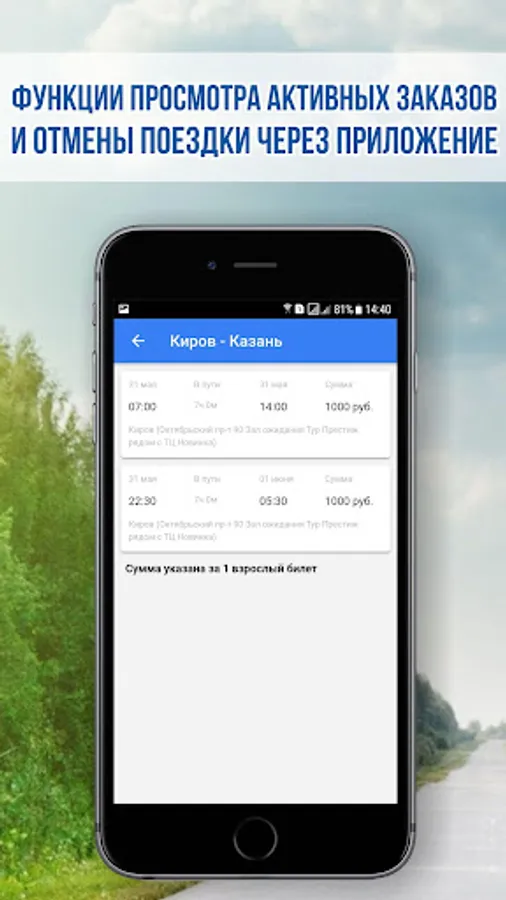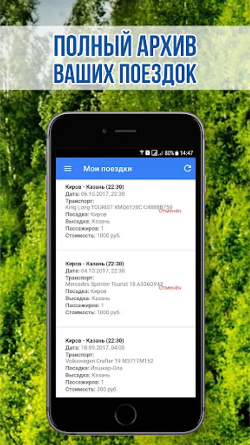Mobile application gives its customers the opportunity to book a trip to the on-line mode, there are active orders review function and cancel a trip through the application, the customer can also request a call back from the controller and observe the location of vehicles at the time of the voyage.