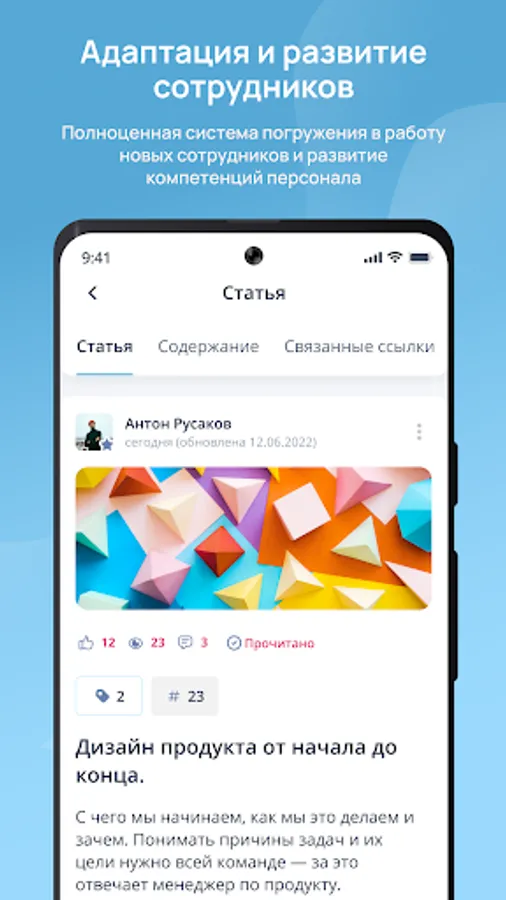 ▶ Make getting to know the company easy and enjoyable for new hires. Create introductory courses with instructions, diagrams, and answers to frequently asked questions.