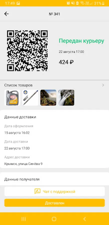 The mobile application "LUCK (Krymsk). Courier" is an efficient and safe platform that helps couriers organize the delivery of products to customers. With a simple but reliable interface, "LUCK (Krymsk). Courier" provides users with the ability to view the status of their orders, view completed orders and track them in real time. Thanks to its advanced features and reliable performance, "LUCK (Krymsk) Courier" is the ideal mobile application for organizing delivery.
