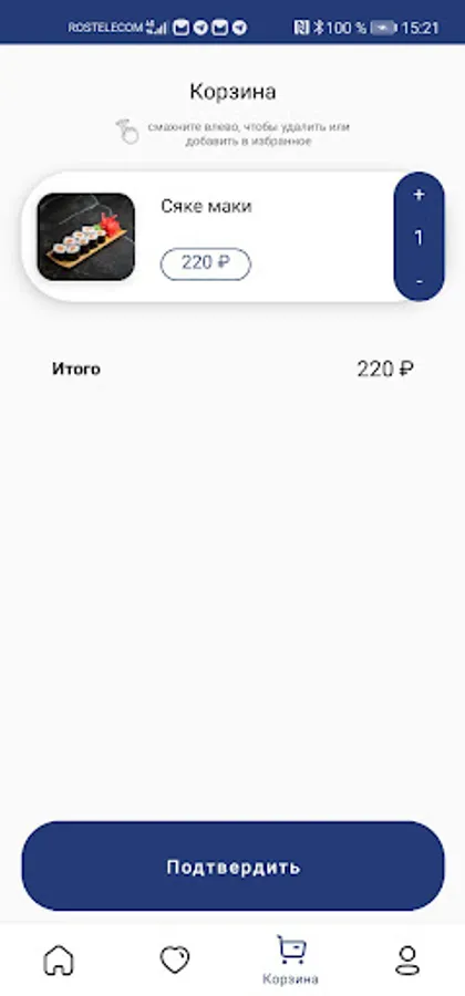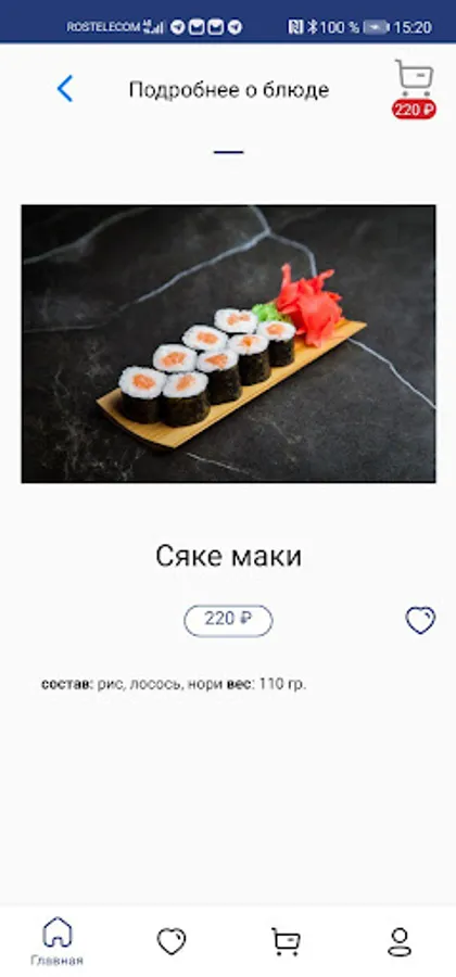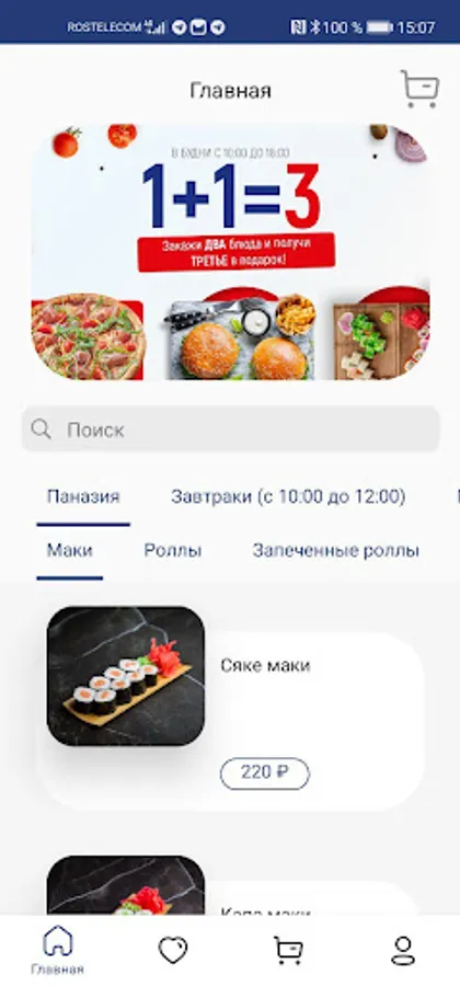 A convenient and functional mobile application in the author's design allows you to order breakfast, pizza, sushi, salads, children's and burger menus in real time!