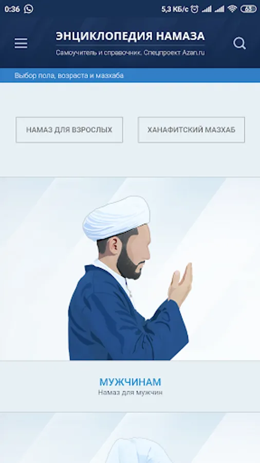 There is also a section on general terms of prayer. One can learn from it what azan and ikamah are, what actions violate namaz, what kinds of namaz exist - and much more.