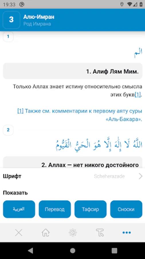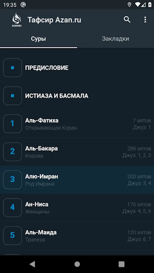 This interpretation has been prepared by our ustases on the basis of reliable comments on the Holy Quran written by scholars of Ahlu-s-Sunnah val-Jamaqa for many centuries. The goal was to reveal and explain the meaning of the Quranic verses in a simple and accessible way, while not departing from the academic tradition of Islam. We have been working on Tafsir azan.ru for more than two years, and at the request of most of our readers, we decided to launch a tafsir mobile application for easy reading and studying texts.