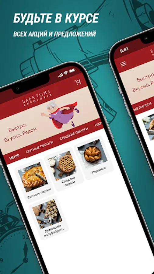 The Baba Toma pie application, in which you can order food delivery to your home and office in Vladivostok.