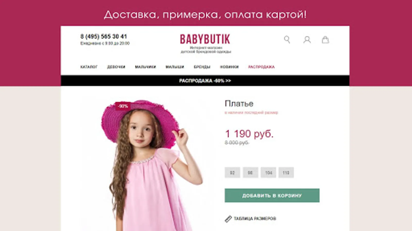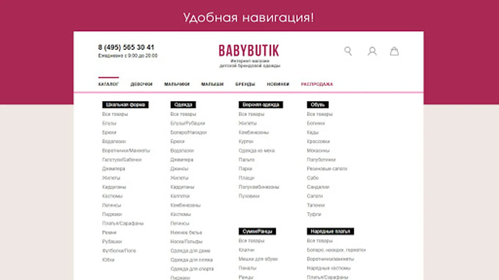 Order fashionable clothes for a child Babybutik was very easy! Install the app and buy products of famous brands: Myoral, Artigli, Trybeyond, Charmante, and many others! Fast delivery, fitting, payment card.