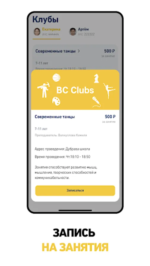Bala City is a mobile application for parents that allows you to get information about accruals, payments and additional classes for each student.