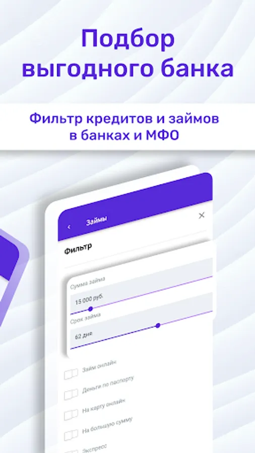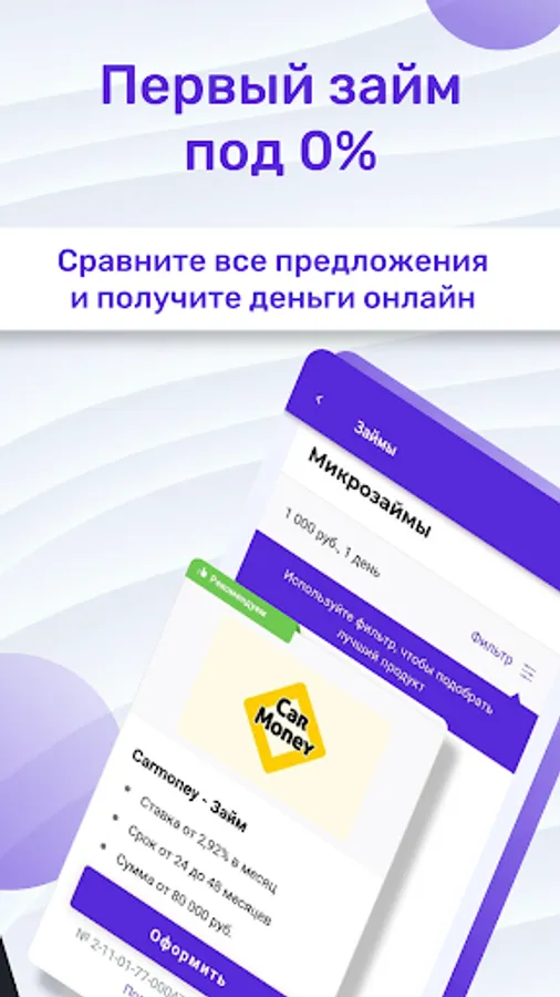 The application contains loans only from legal MFIs that are verified by the Central Bank of the Russian Federation and have a work permit. When choosing, pay attention to offers with a rate of 0% - they are real, relevant for new clients of MFIs.
