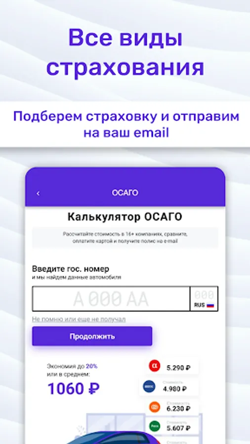 Each offer is described in detail, you see all the conditions, evaluate it objectively. After choosing, you can immediately send an application for registration - the application will redirect you to the page of the bank or insurance company.