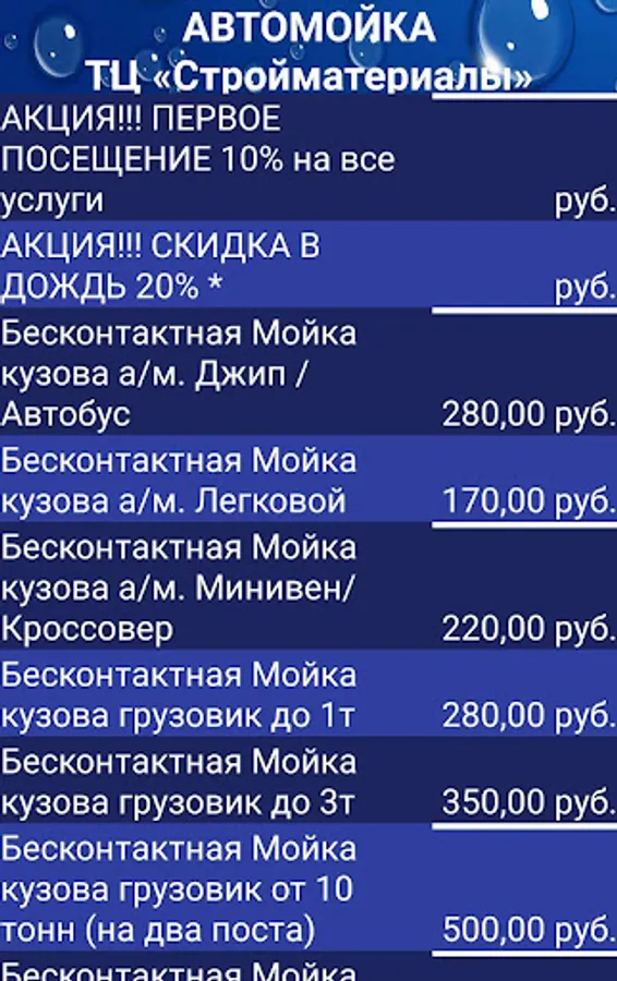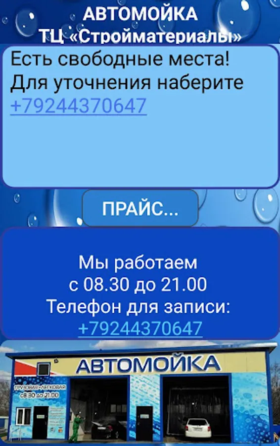 Information service of Car wash "TC Stroymaterialy" in Novy (Vladivostok).