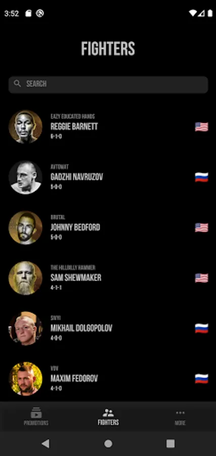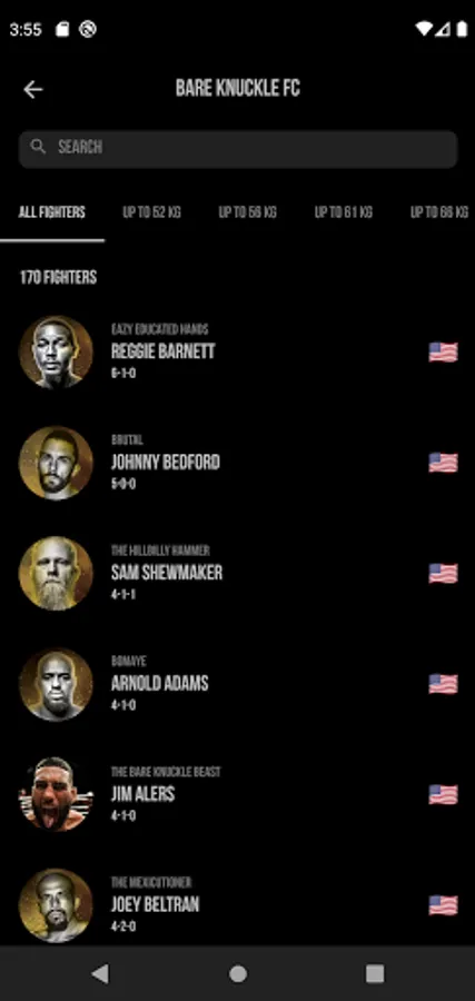 Fist fights are the ancestors of all modern martial arts. This app contains statistics for all major promotions conducting these fights. Also in it you can find any fighter who has ever fought with his bare fists, see his data and professional record.