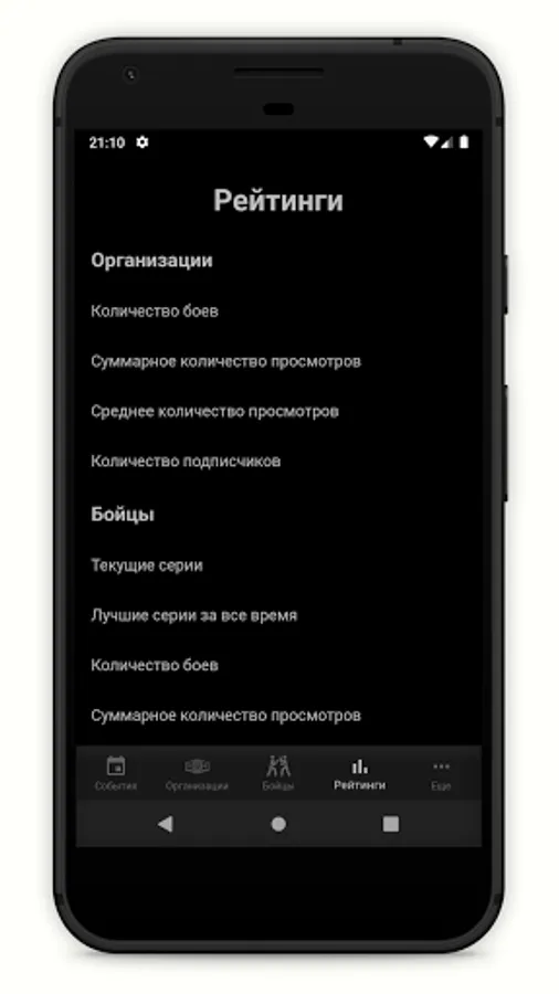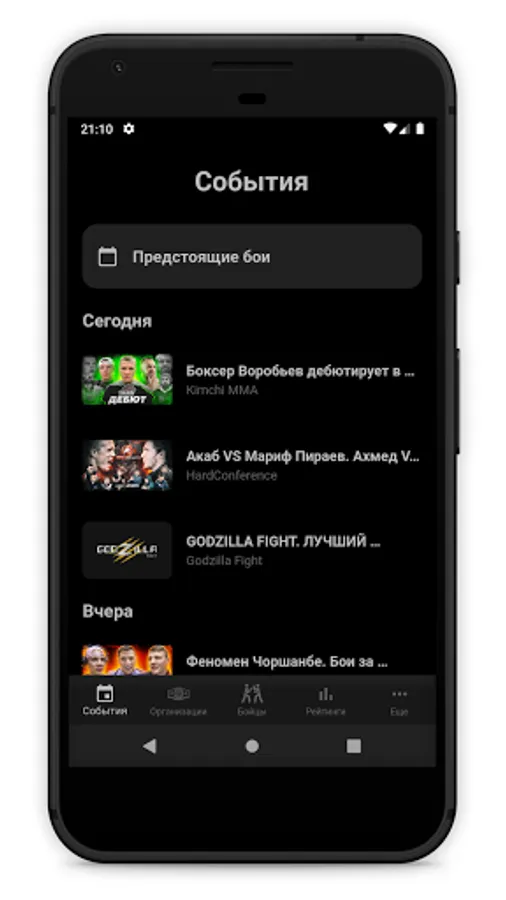 You know, once, quite by accident, I saw battles in the sand on a popular video hosting site, the name of which cannot be written in the application description, and immediately realized that I fell in love. I did not miss a single issue, followed the fighters and their development, saw how new organizations are being born, and slowly but inexorably old ones are extinguished. In just a couple of years, this industry has captured the Russian (and not only) segment of this most popular video hosting, the name of which I do not write again, and even got its own name - POP-MMA (or POP MMA, I don't know how to correctly). It developed so quickly that at some point there was so much information that it was no longer possible to keep it in my head (and my head is not the biggest, by the way), so I made this application.