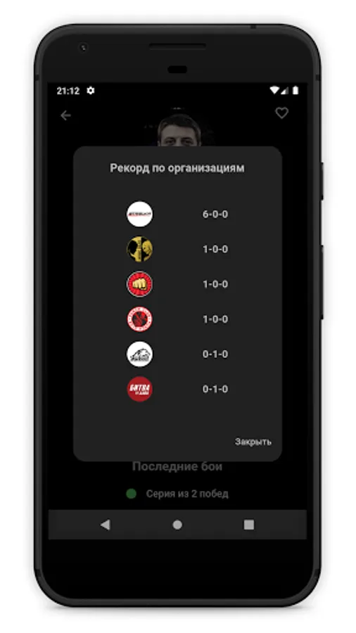 - Detailed records of ALL fighters (you can find out the overall record, as well as the record in each promotion separately, which is important for fans of statistics)