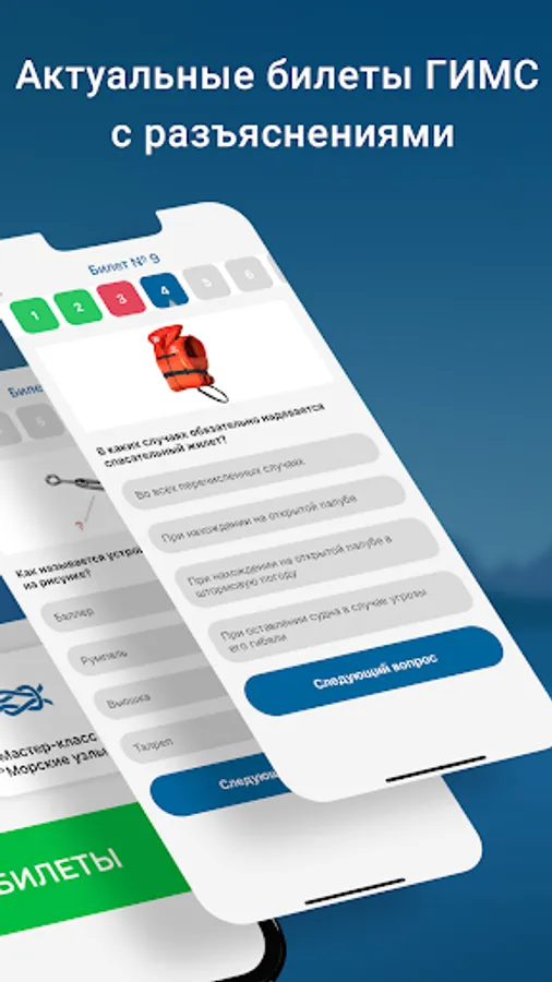 In the application, you can prepare for passing the theoretical exam at GIMS. Various types of testing are available here. Video course on teaching navigation on the river. Video course on teaching navigation at sea.