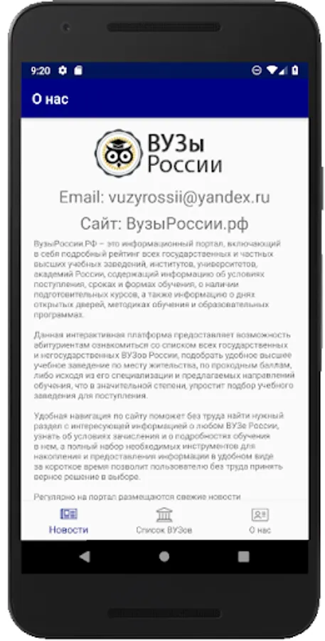 The interactive portal of Universities of Russia.RF provides access to complete information about all higher educational institutions of Russia. Each user can easily find detailed information for any university in Russia. A detailed database contains comprehensive information about all higher educational institutions of Russia, their divisions, faculties and forms of education.