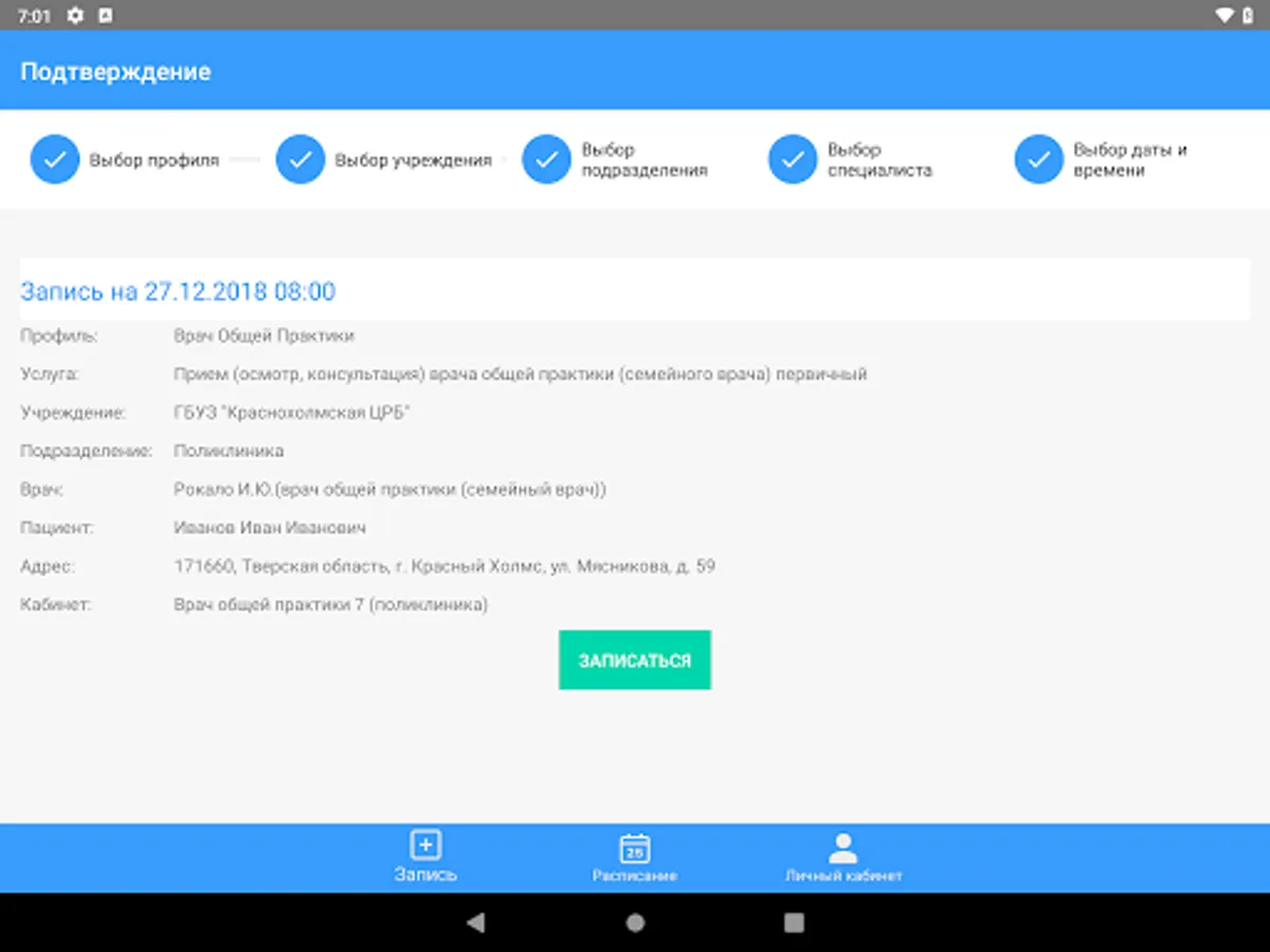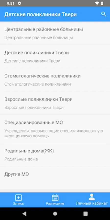 The application "Appointment to the doctor" is intended to make an appointment to the doctor in the medical institutions of the Tver region, serving citizens under the policies of the MLA.