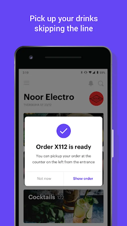 — Explore the full version of their menus with photos, descriptions and special offers; — Order and pay right from the app — in advance or on the spot during an evening; — Get a notification when your drink is ready for pick-up;