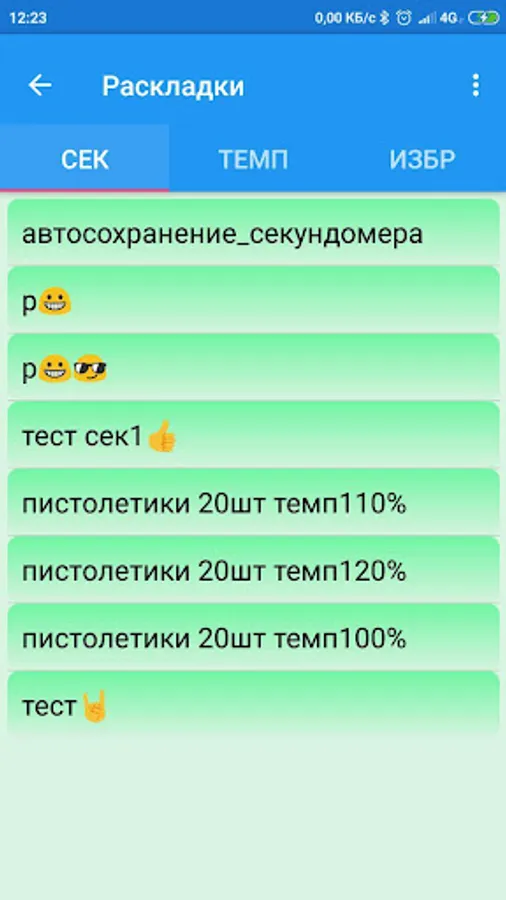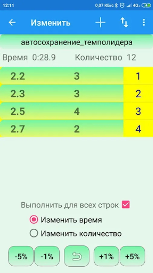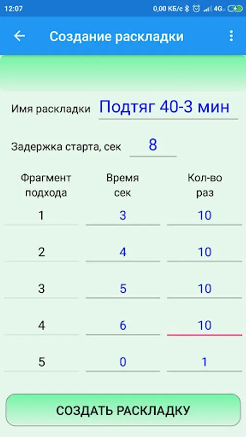 If the tempo changes abruptly during the exercise - as often happens in the pull-up on the crossbar, when you have to adjust the pull-up cycles with the breathing cycles - the execution time of the movement cycle may be the same for several cycles in a row. In this case, the approach actually splits into fragments with different tempo of movements, which allows you to quickly and conveniently manually compile layouts by tempo , specifying the cycle time and the number of repetitions for all fragments of the approach.