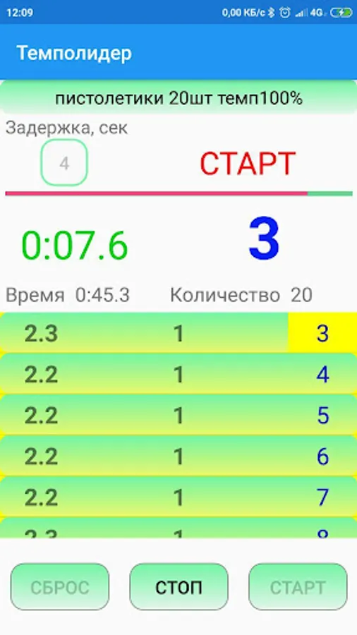 Tempolarizing, allowing you to reproduce the layout according to the pace of any degree of complexity, makes it possible to control the pace of the exercise from approach to approach, from training to training, helping to objectively assess the change in the level of performance of an athlete.