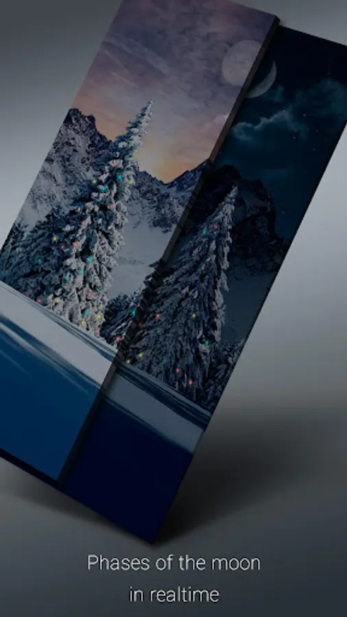 — Each wallpaper from the collection contains a realistic landscape of high quality, where are dynamically displayed precipitation, fog, cloudiness, moon phases, daylight changes and much more.