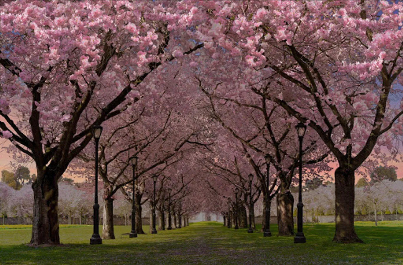 The huge garden is filled with flowering trees, Sakura cherry blossoms fly in the wind, if we could still add flavors we would do it!