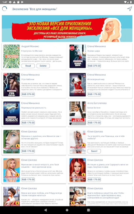 A unique collection of female detective novels by Yulia Shilova, Elena Minkina and other authors. Revelations of the stars and fascinating guides. You will find these books only in here! All the bestsellers in one app.